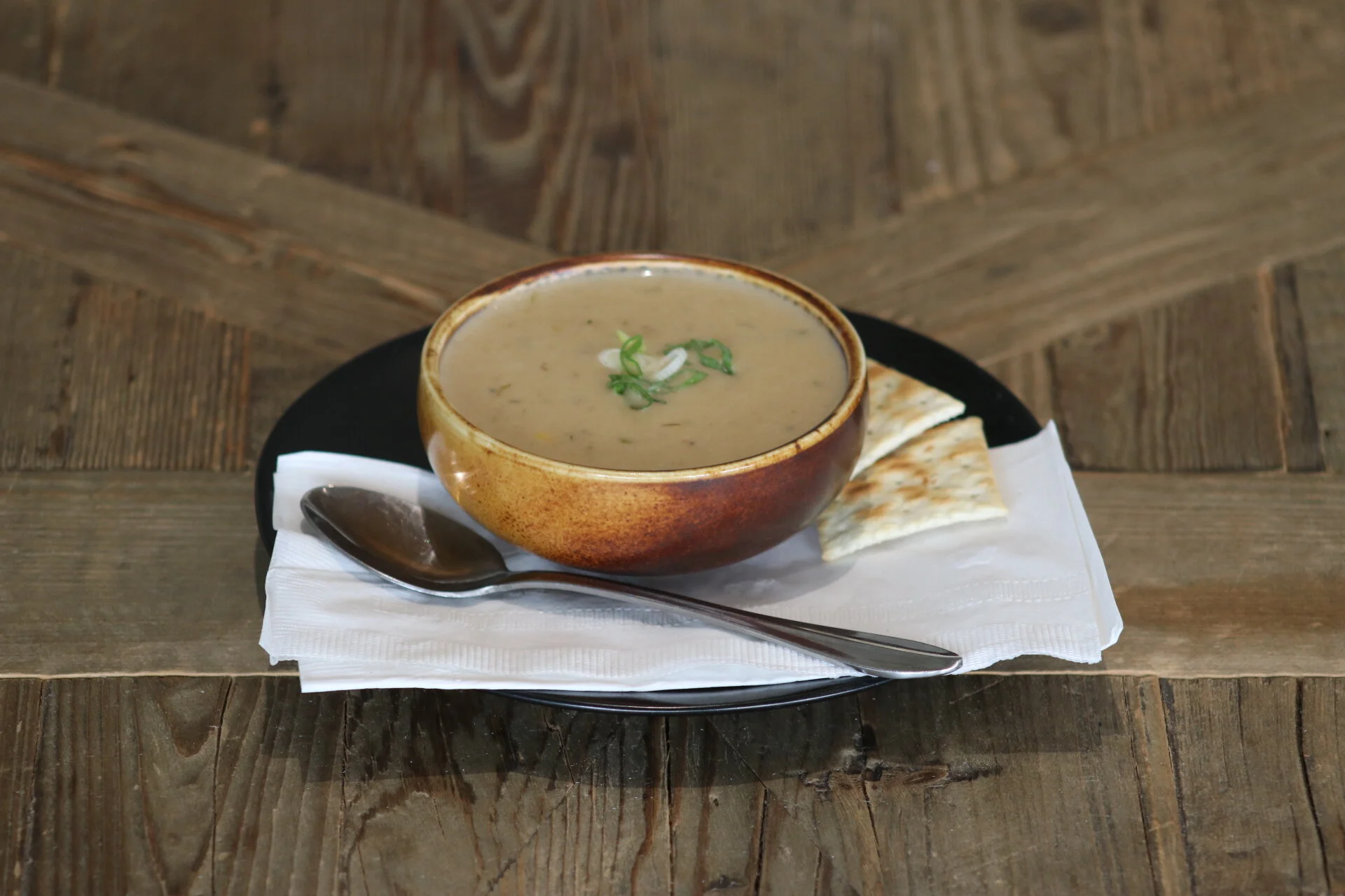 On medium heat melt butter, add onion, celery and garlic. Cook until translucent.